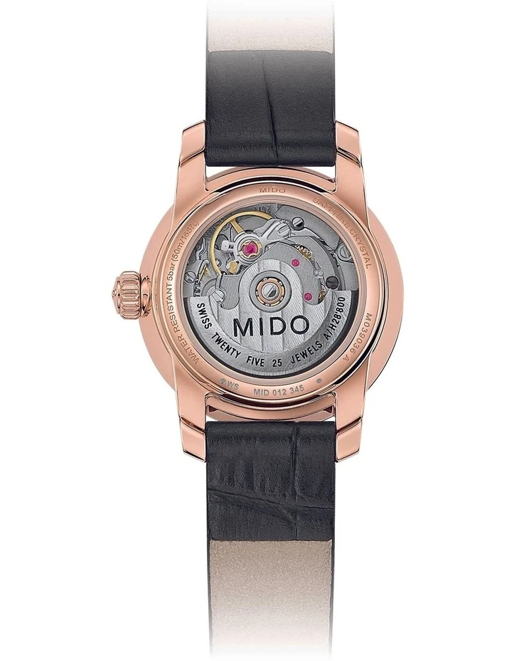 Gentle lines and a small diameter characterise this automatic Baroncelli Lady women’s watch. It is available in several different versions, two of which feature a magnificent mother-of-pearl dial and 12 diamonds. Its transparent case back allows the beauty of its finely decorated Elabore-grade movement to be admired