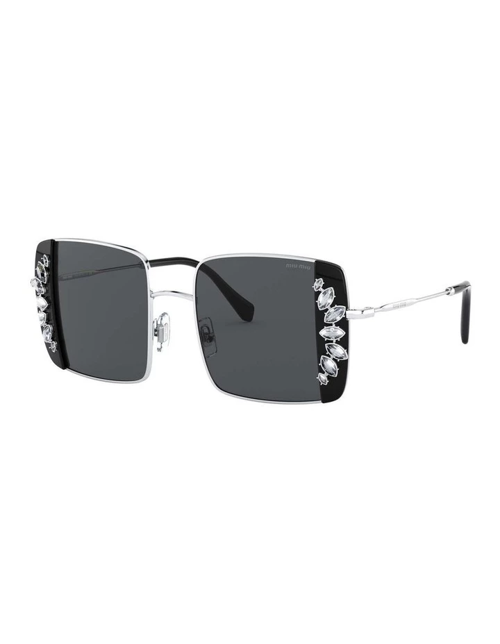Category 3 – General purpose sunglasses high protection against sunglare, good UV protection, not suitable for driving at twilight, at night or under dull light Layering-up retro metal shapes with bijoux-inspired crystal accents and colorful DNA Havanas, this collection highlights the irresistible contradictions of MIU MIU.