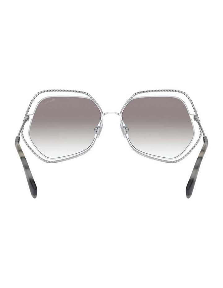 Category 2 – General purpose sunglasses – good protection against sunglare, good UV protection, not suitable for driving at twilight, at night or under dull light conditions Rich metal finishes and glam-gradient shades frame the provocative MIU MIU girl look of this Catwalk protagonist.