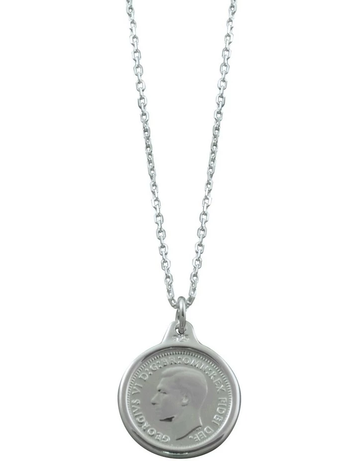 A versatile necklace including an adjustable clasp, allowing the length to be adjusted up to a maximum length of 56cm. This necklace includes a real Australian threepence coin encased in sterling silver.