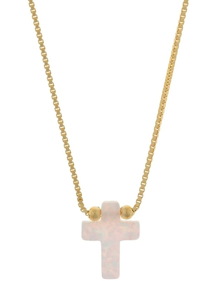 Materials: Sterling silver with gold plated chain with white synthetic Opal Cross