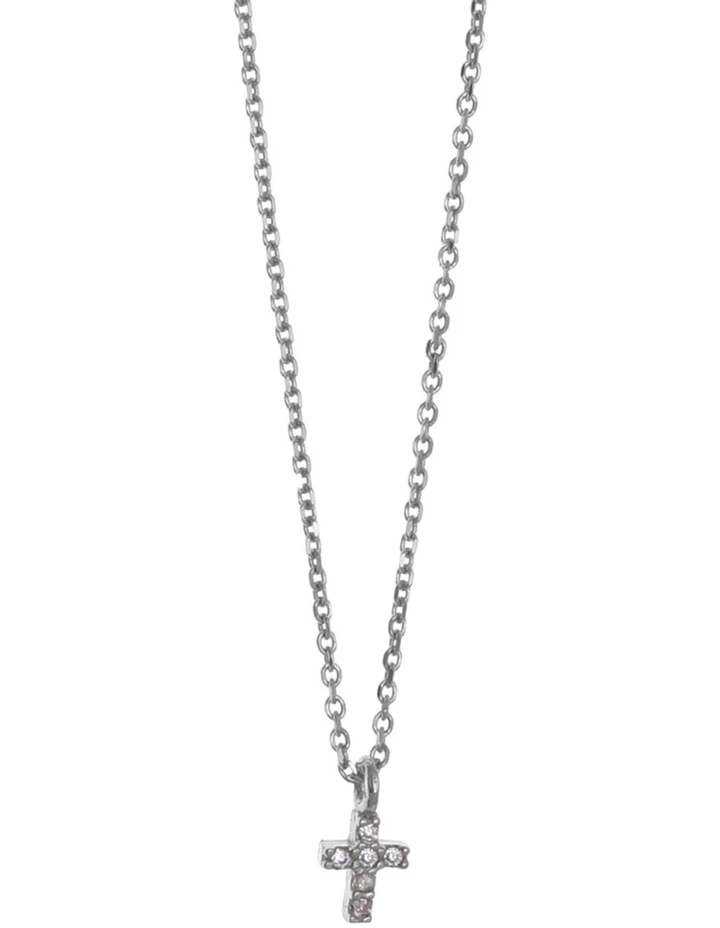 Mocha Tiny Shiny Cross Necklace w/ White Zirconia – Silver