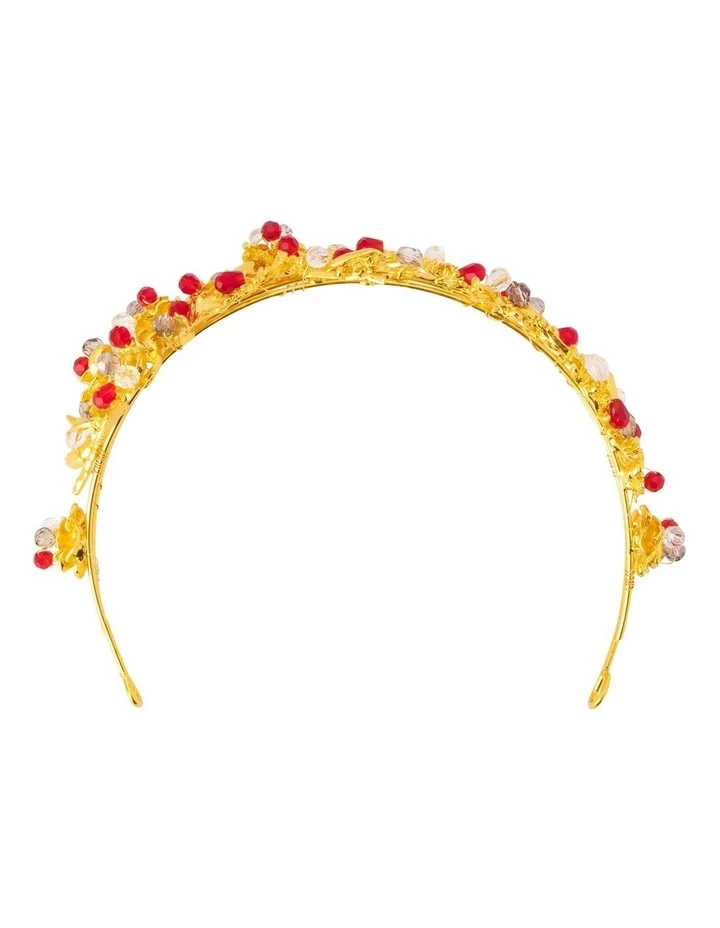 The IRIS headband is encrusted with glass beads to highlight the metal flowers and leaves adorning this headband. Perfect for a cocktail party, wedding or a day at the races.