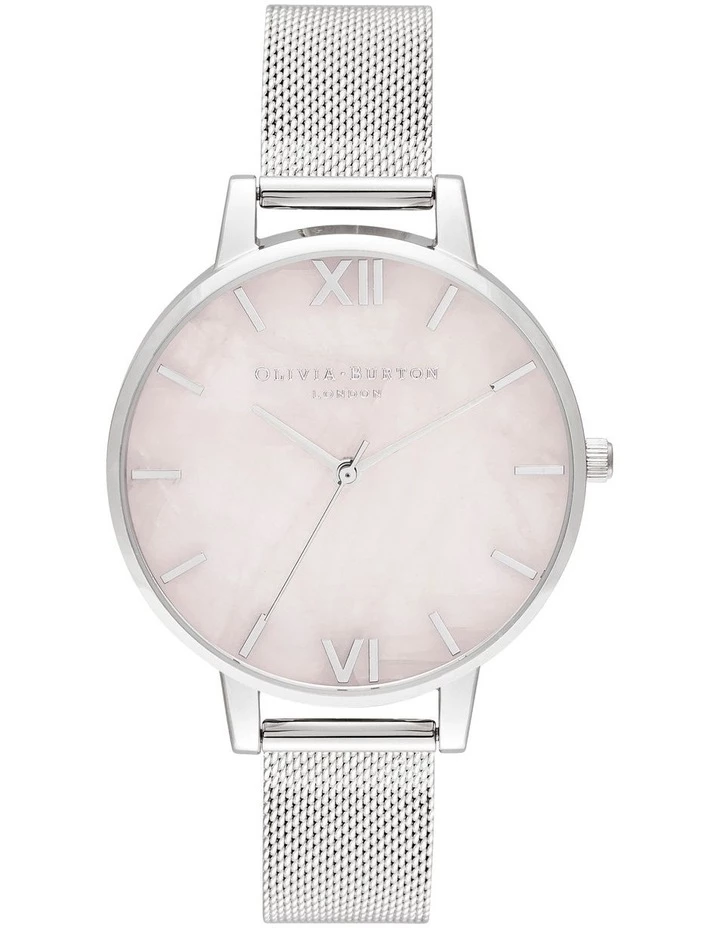 Olivia Burton Semi Precious Big Dial with Rose Quartz dial & Silver Mesh band