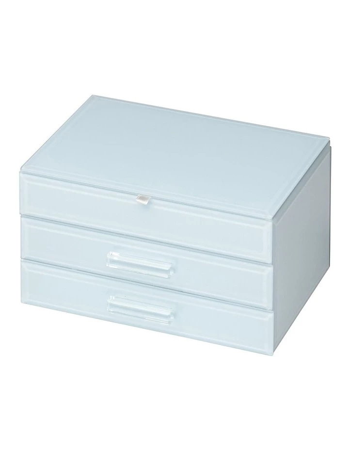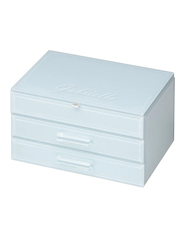Functionality meets fabulous style with this glass jewellery box. It features three tiers: one compartmentalised top section plus two removable drawers, so there’s plenty of room for rings, earrings, bracelets and necklaces. Every item will be safely stored, neatly arranged and set against tactile velvet to protect it from scratches. The glass box will glisten in the light to bring an air of vintage glamour to your vanity table. What more could a girl want?