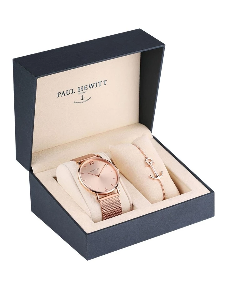 There are lots of good combinations, but only one perfect match. This is a philosophy that we also follow with our new set box, which comprises the rose gold Anchor Spirit bracelet and the special Sailor Rose Sunray, available exclusively in this set with rose gold dial. This perfect combination brings together modern elegance and precious materials with north German durability, giving you the opportunity to express your affinity with the North and your nautical, cosmopolitan lifestyle.