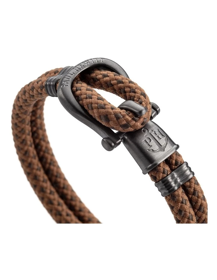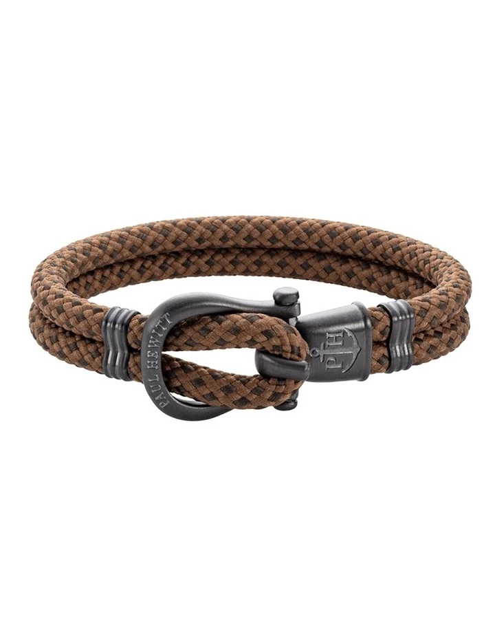 Maritime. Robust. Authentic. Our new Phinity collection for men combines nautical symbolism in a material mix thats both sporty and elegant. The grey shackle made of stainless steel serves as a unique locking point for our bracelet, connecting sturdy sailing ropes and representing cohesion and strength. With your camel-olive Phinity bracelet, youre carrying a very loyal companion on your wrist whether out on the high seas or in the urban jungle.