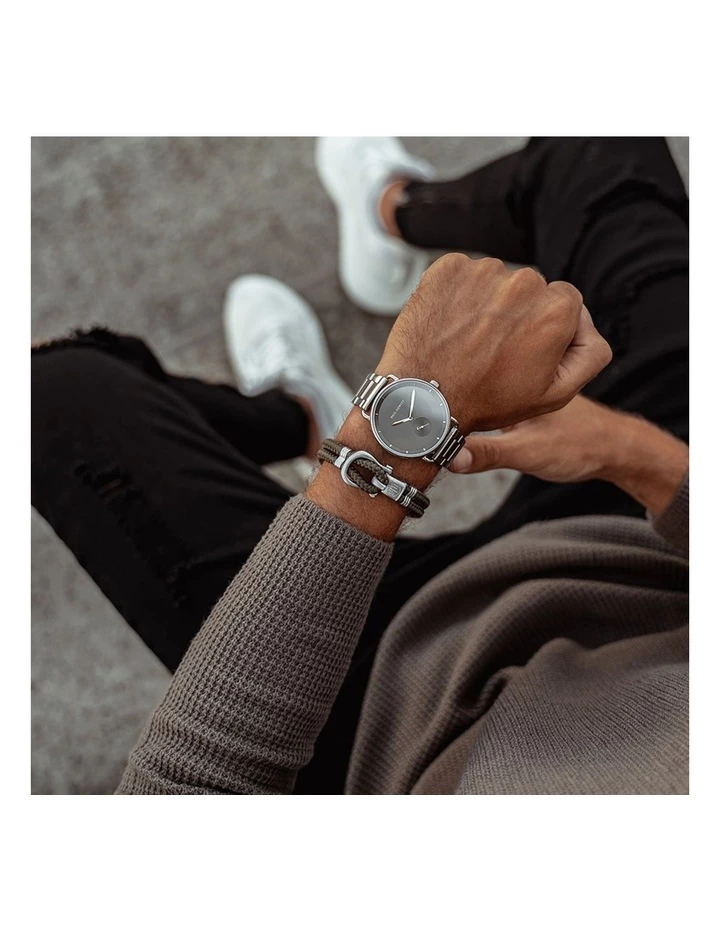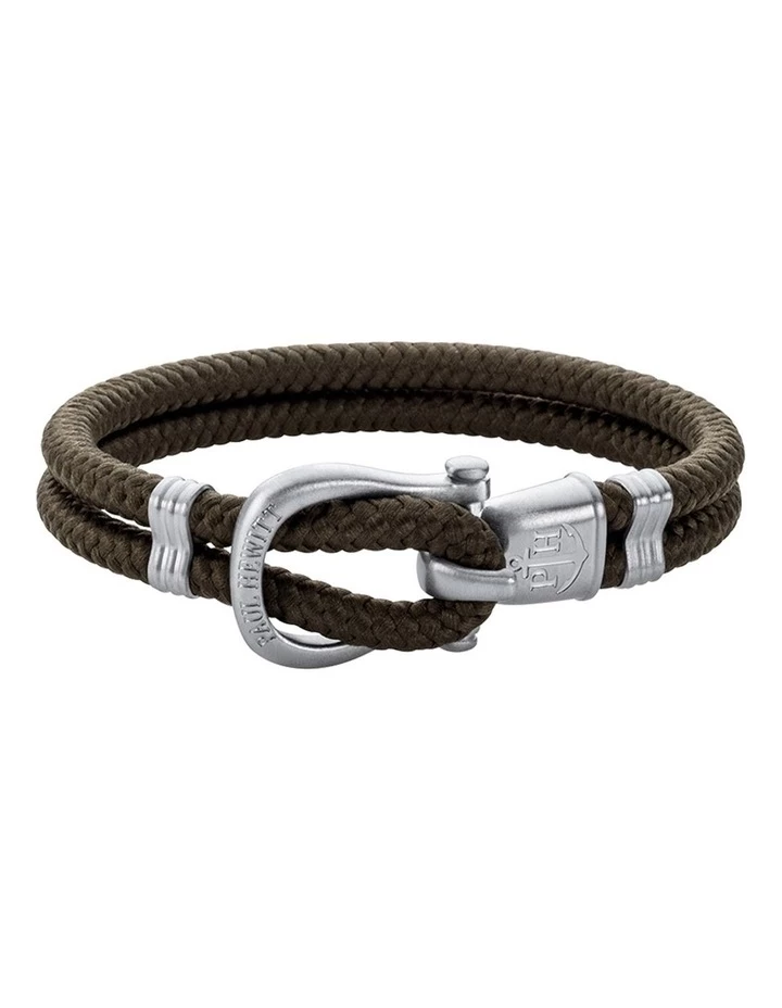 Maritime. Robust. Authentic. Our new Phinity collection for men combines nautical symbolism in a material mix thats both sporty and elegant. The silver shackle made of stainless steel serves as a unique locking point for our bracelet, connecting sturdy sailing ropes and representing cohesion and strength. With your olive Phinity bracelet, youre carrying a very loyal companion on your wrist whether out on the high seas or in the urban jungle.