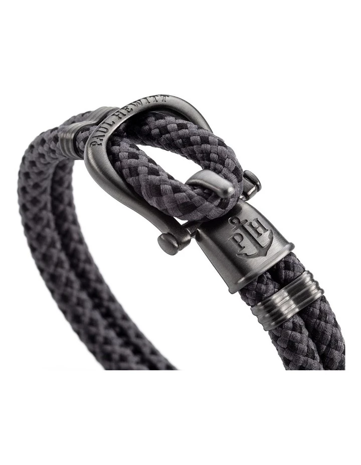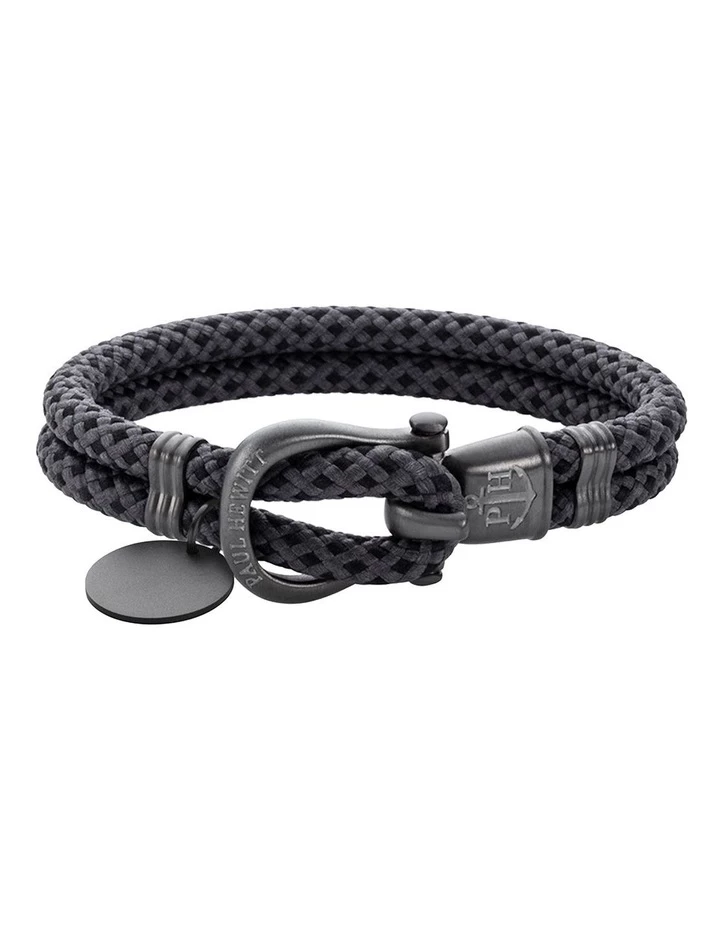 Maritime. Robust. Authentic. Our new Phinity collection for men combines nautical symbolism in a material mix thats both sporty and elegant. The grey shackle made of stainless steel serves as a unique locking point for our bracelet, connecting sturdy sailing ropes and representing cohesion and strength. With your black-grey Phinity bracelet, youre carrying a very loyal companion on your wrist whether out on the high seas or in the urban jungle.