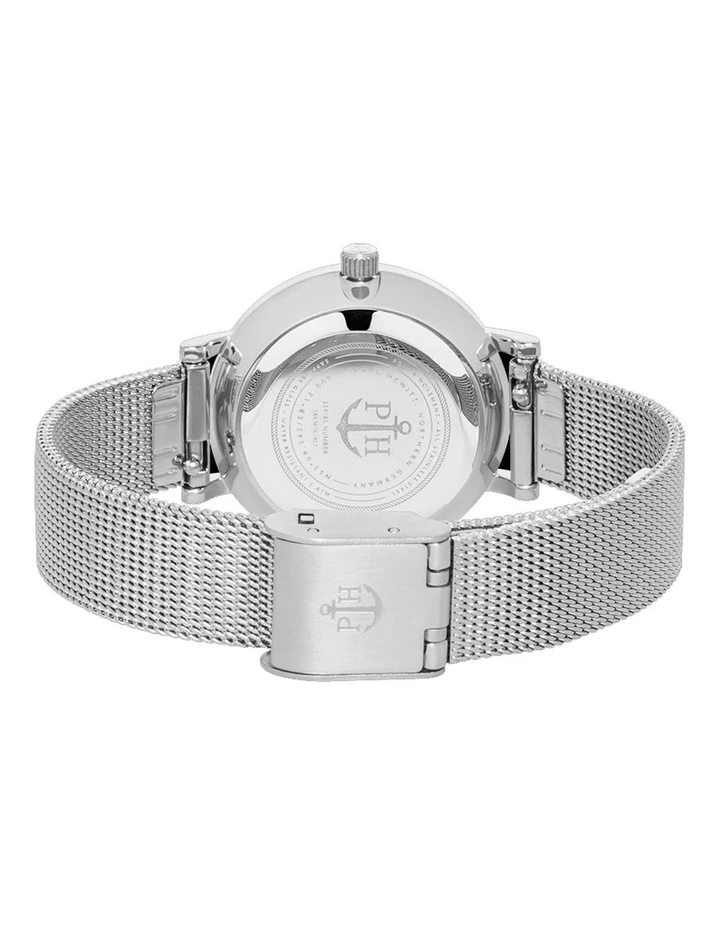 Modern elegance meets thesteadiness of Northern Germany in the Sailor Line. The super flat watch caseframes the timeless dial elegantly in white. With a Nordic coolmetal band made from top quality Milanese braiding, the Sailor is a stylish companionfor any occasion.