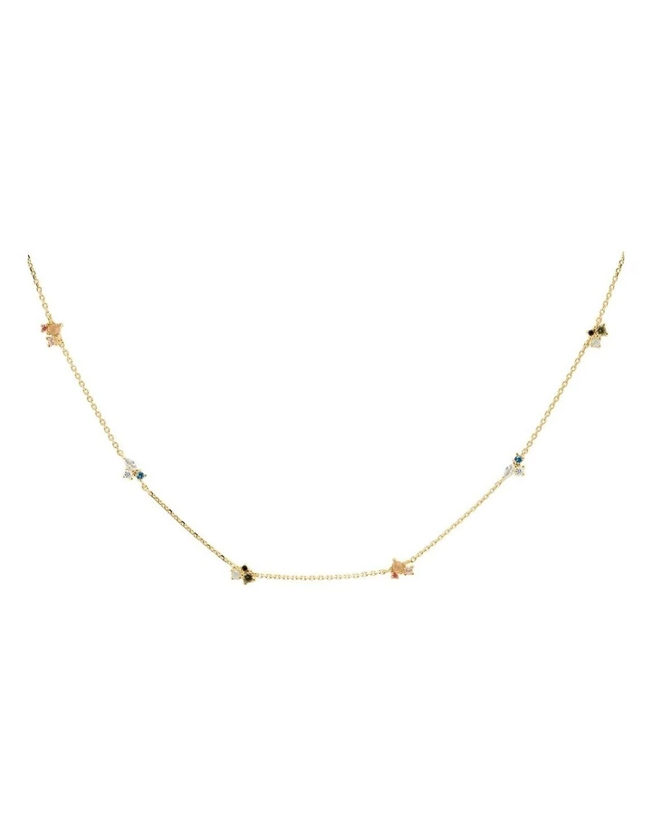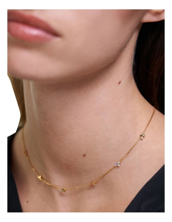 La Palette necklace encapsulates the 7 shades of the collections palette: a vivid & delicate statement to fill your neck with light and colour. Created between canvases, brushes, and infinite palettes, Atelier is a homage to the secret and rearing world of ateliers: the place where every master creation begins. Inspired by the charm of artisan workshops, semi-precious stones coloured in seven unique tones portray a delicate and vivid essence.