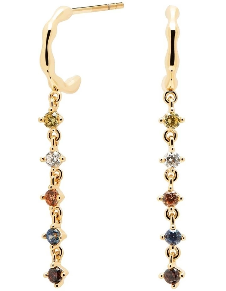 This design is characterized by the five colorful protagonist stones that decorate it. 925 sterling silver with an 18k gold plating is combined with corundum sapphire blue, rhodolite, golden yellow, pure white, and champagne hues that twist the piece turning it into a delicate jewel, taking on the natural beauty of wildlife.