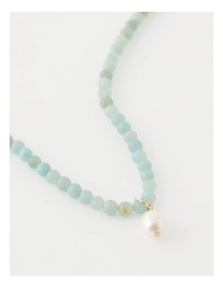 Perfect for layering, this necklace will add a charming touch to any look. Decorated with light green beads and an eye-catching freshwater pearl, this necklace has a medium length to suit any outfit.