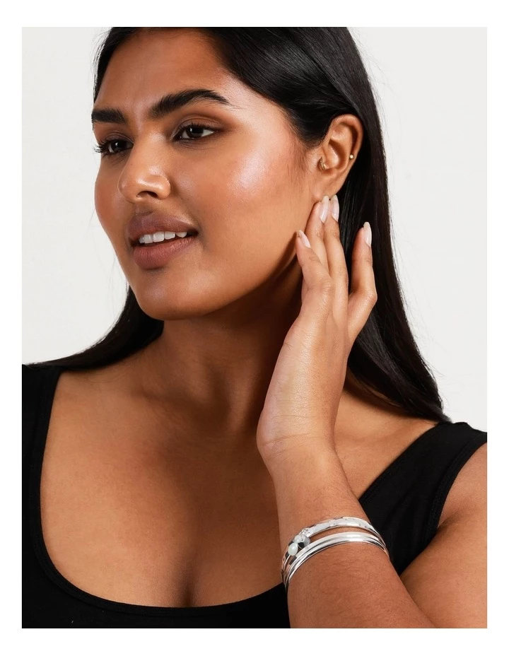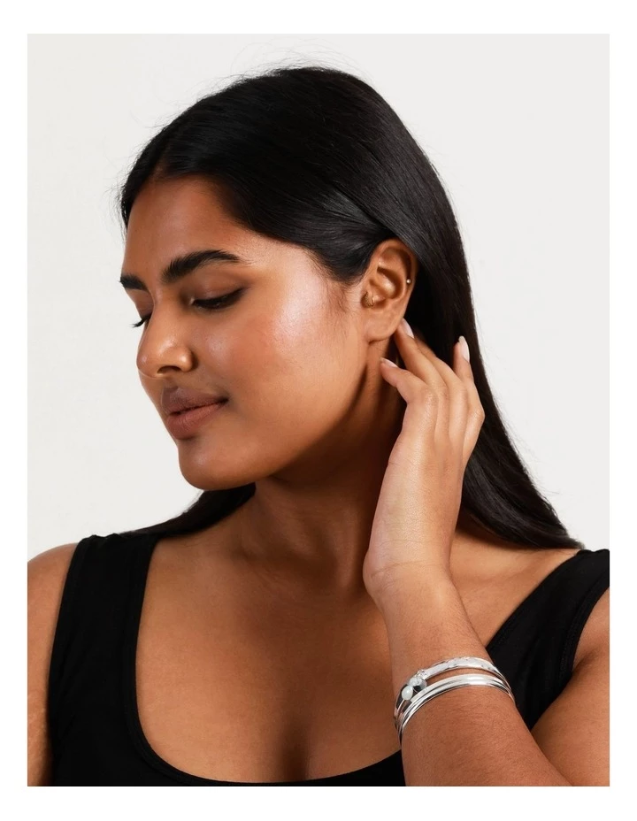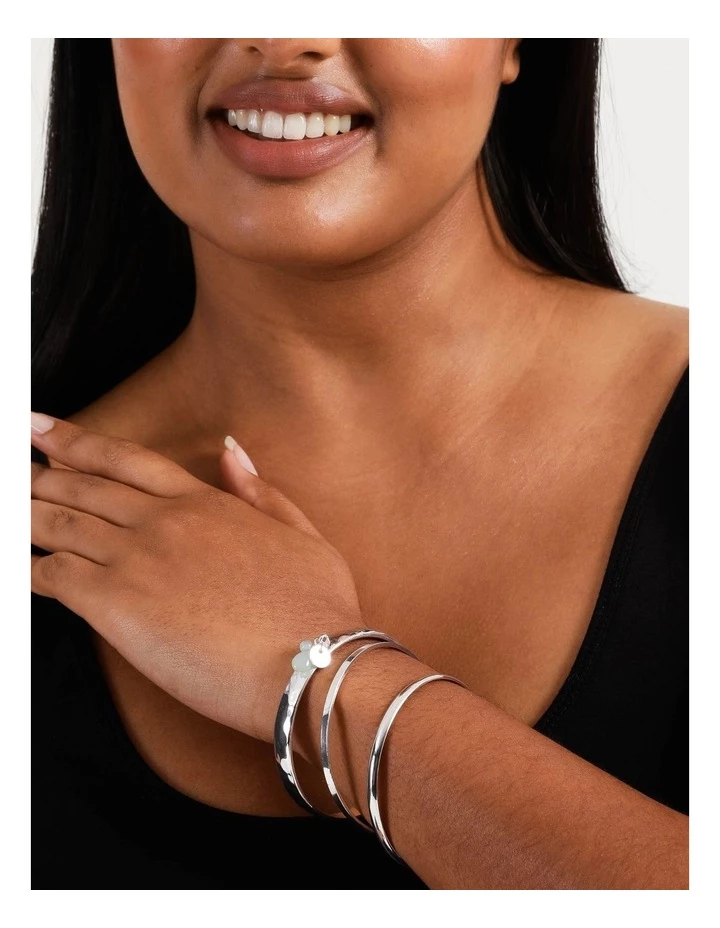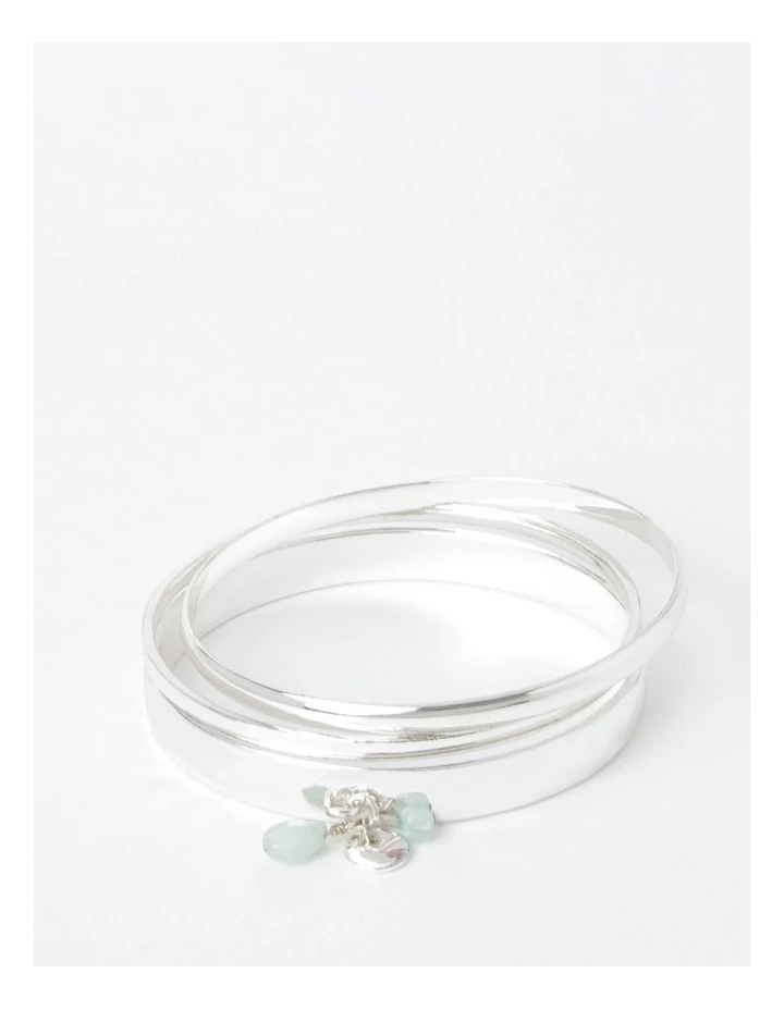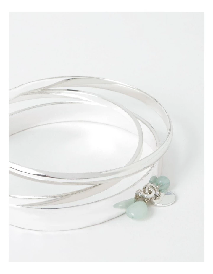 Elevate your look with a bangle set. This set features three, silver toned bangles that are decorated with graceful charms. Mix and match to your hearts content!