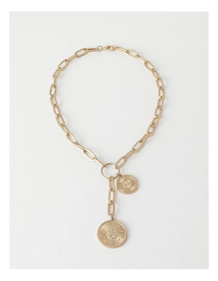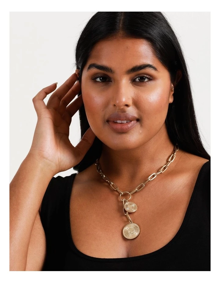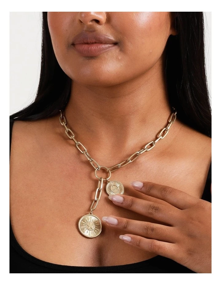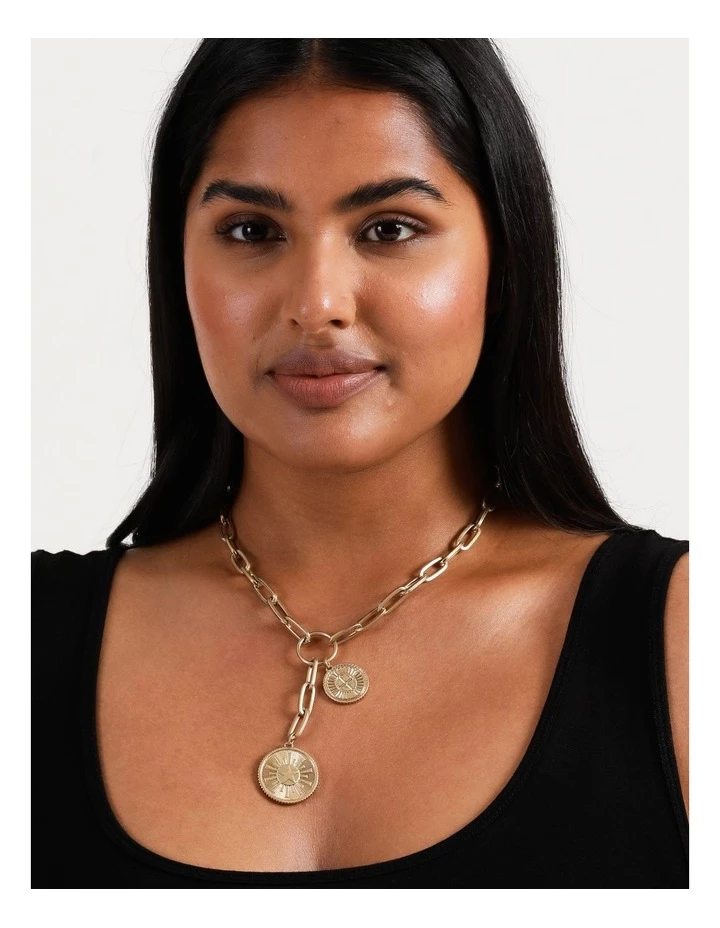 Elevate your look with a charm necklace. This necklace is gold-toned, and boasts coin charms adorned to a link chain. Style with your favourite everyday outfit for a stunning finish.