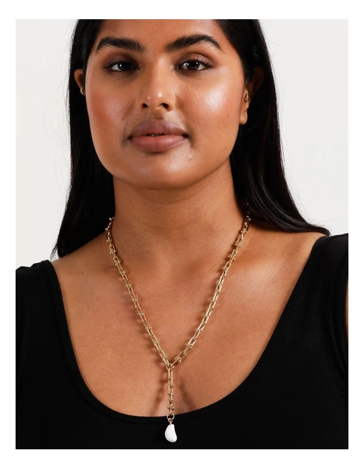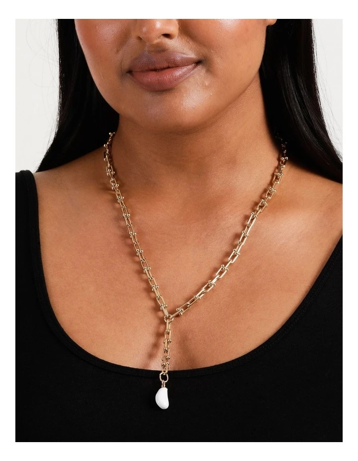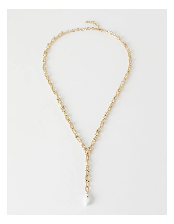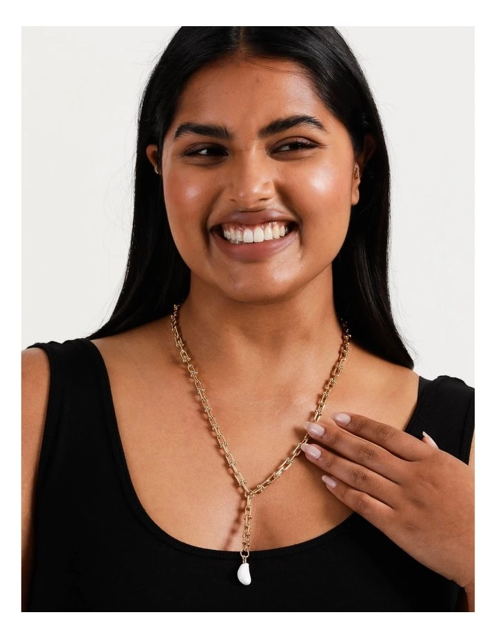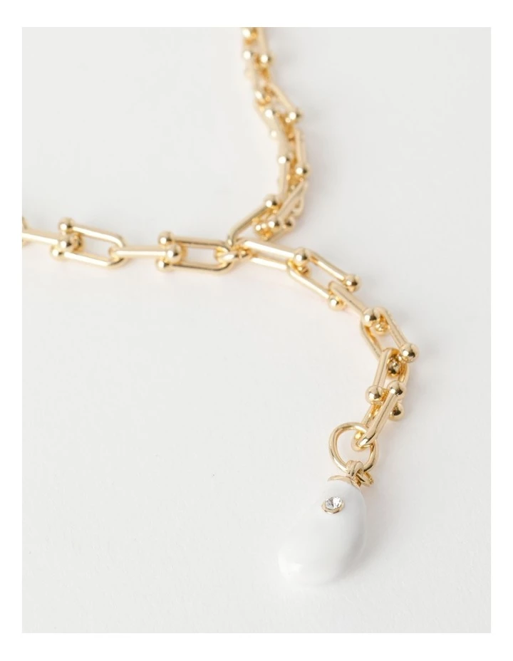 Add the perfect finishing touch to your look with a charm necklace. This necklace features a link chain adorned with a white, enamel charm. Style with your favourite gold toned jewellery for an elevated finish.