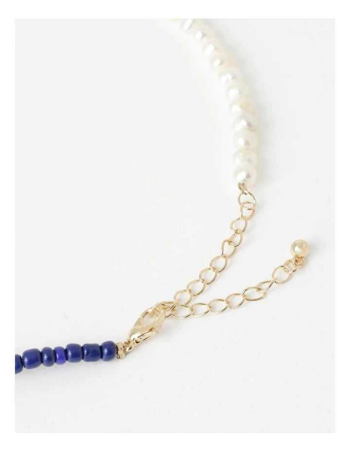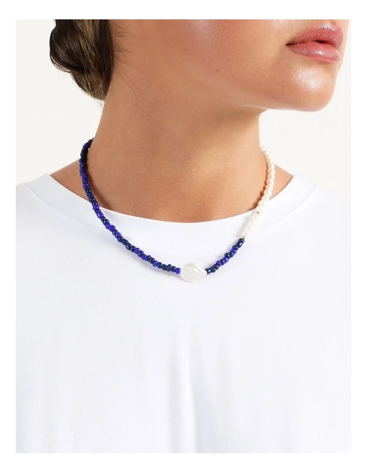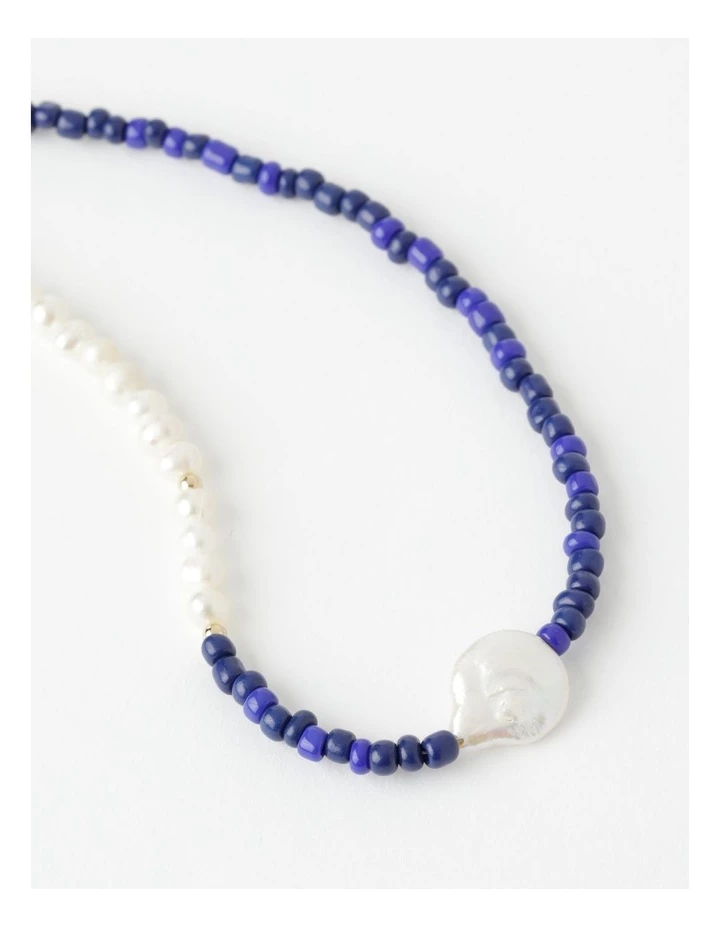 Add a pop of colour to your look with a statement necklace. This necklace is crafted from real freshwater pearls, with half of them coloured a vibrant deep blue. Style with your favourite evening wear for an impactful finish.
