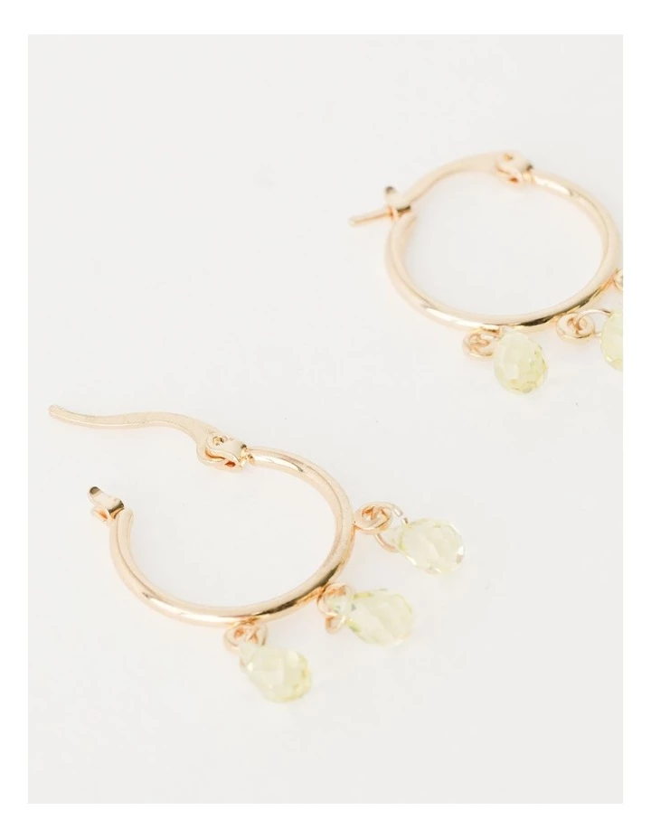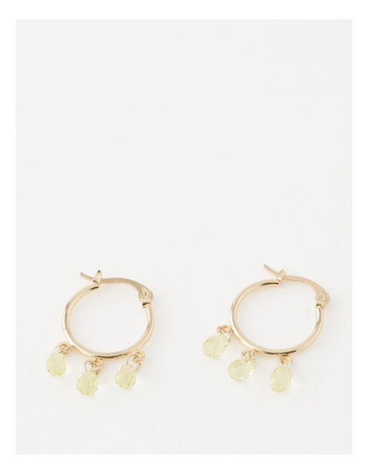 Add an elegant touch to your look with a pair of triple stone hoop earrings. These earrings feature three dainty stones adorned to a gold toned hoop. Style with your favourite evening wear for a chic finish.