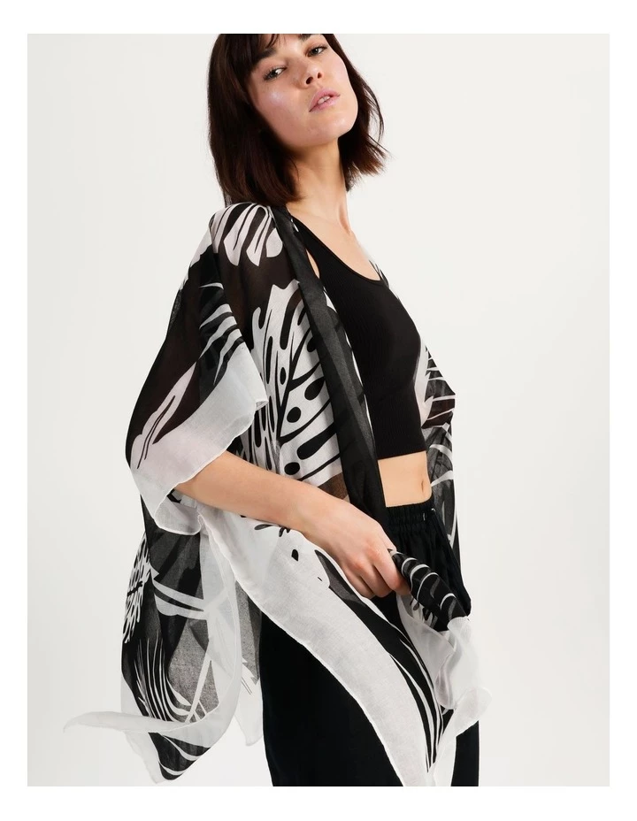 A chic and effortless way to complete an ensemble, this kaftan is easy to throw on and pair with a myriad of outfits. Decorated with a monochrome floral print, it flows across the body in a relaxed fit.