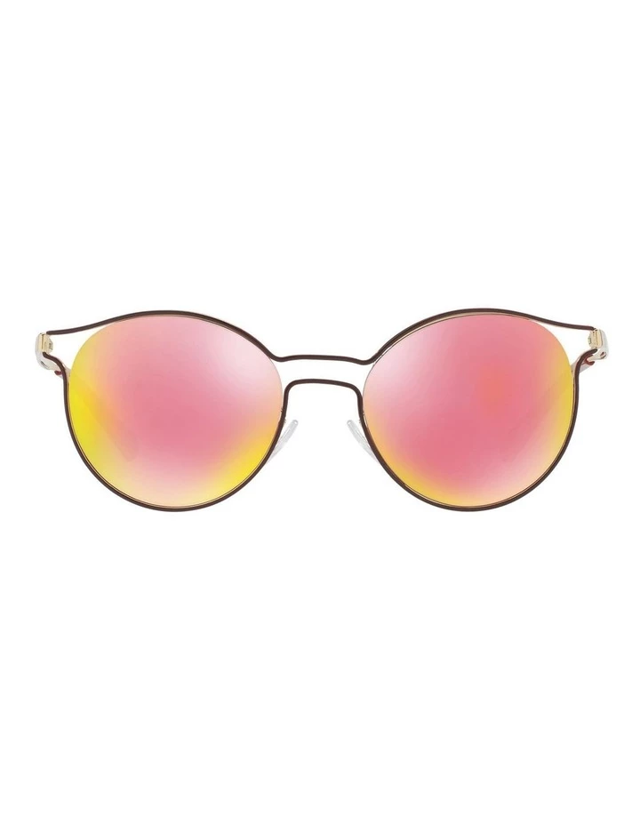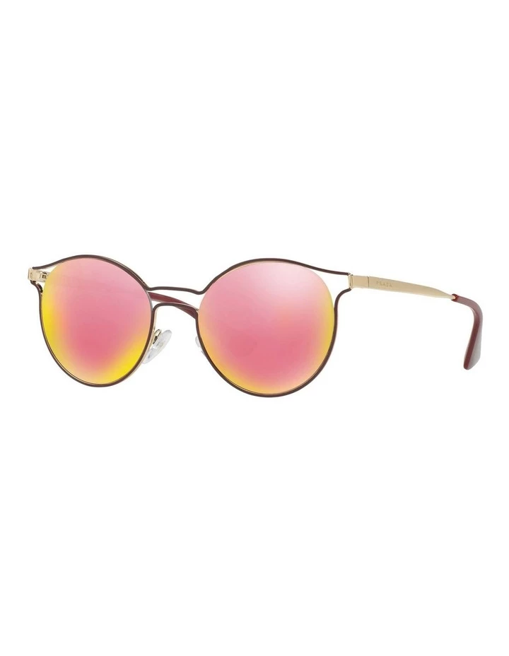 Revamp your look with fashionable, open-style metal frames from Prada. With acetate temple tips and colorful mirrored lenses, this shade is sure to make a lasting impression.