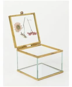 Heritage Cadia Small Flower Jewellery Box 6x8x8cm in Clear/Gold