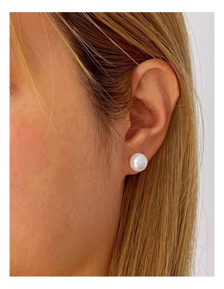 - Fabrication: Button Cultured Freshwater Pearl, Sterling Silver Stud Earrings
