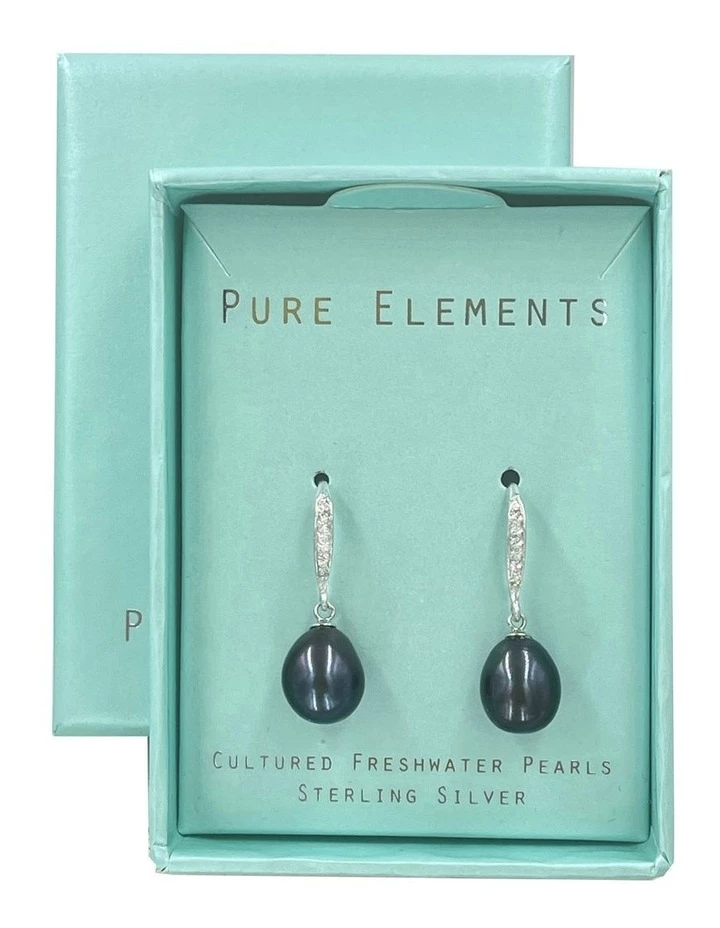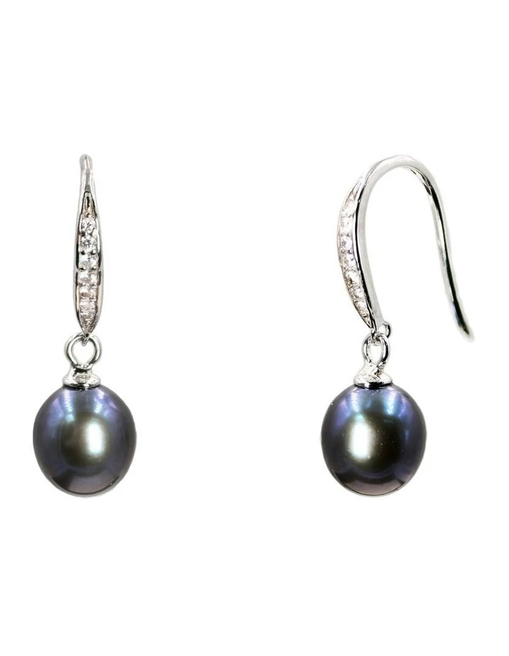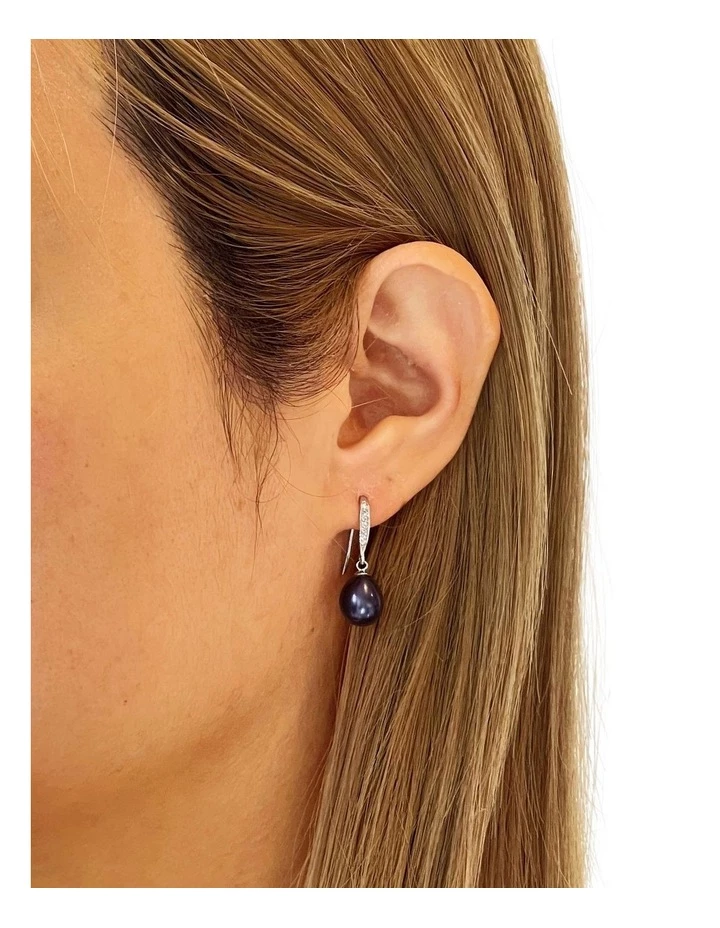 Add a Touch of Elegance with these Peacock Black Cultured Freshwater Drop Pearl Sterling Silver Pave Cubic Zirconia Hook Earring Gift.