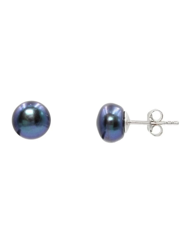 Luscious Peacock Black Cultured Freshwater Pearl Sterling Silver Studs (Large)