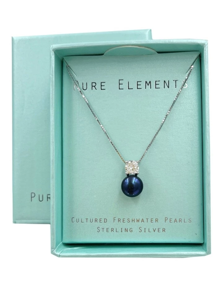 Delight in these Simply Brilliant Cubic Zirconia Peacock Black Cultured Freshwater Pearl Sterling Silver Pendant on 45cm Chain presented in Gift Box. Perfect for Everyday Wear or for a Special Gift. Celebrate Life and Love Everyday with PURE ELEMENTS Pearlicious Luxuries. Thoughtfully designed in Australia.