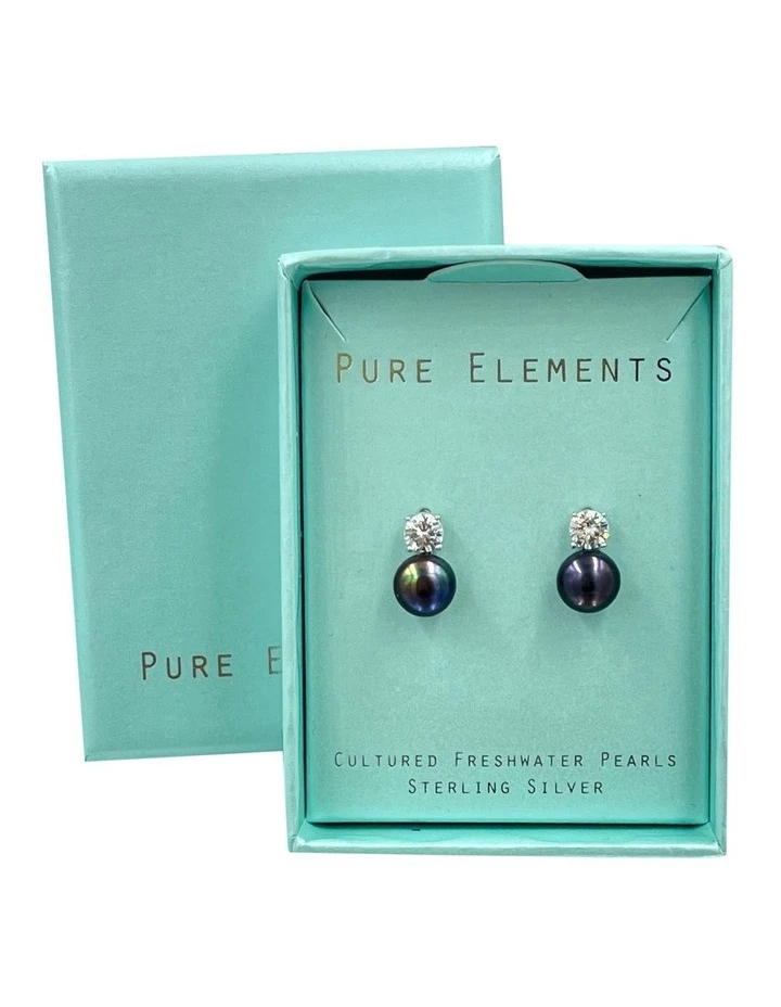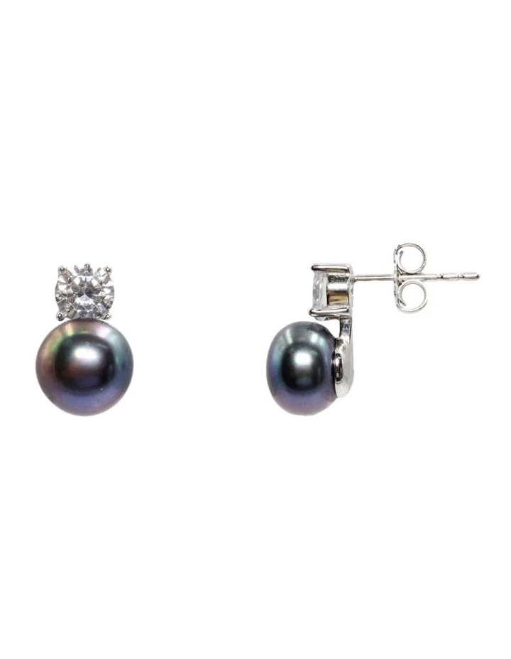 Delight in these Simply Brilliant Cubic Zirconia Peacock Black Cultured Freshwater Pearl Sterling Silver Earrings presented in Gift Box.