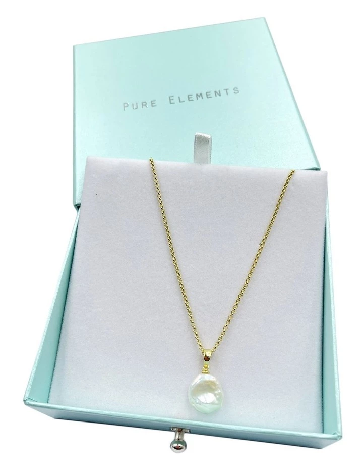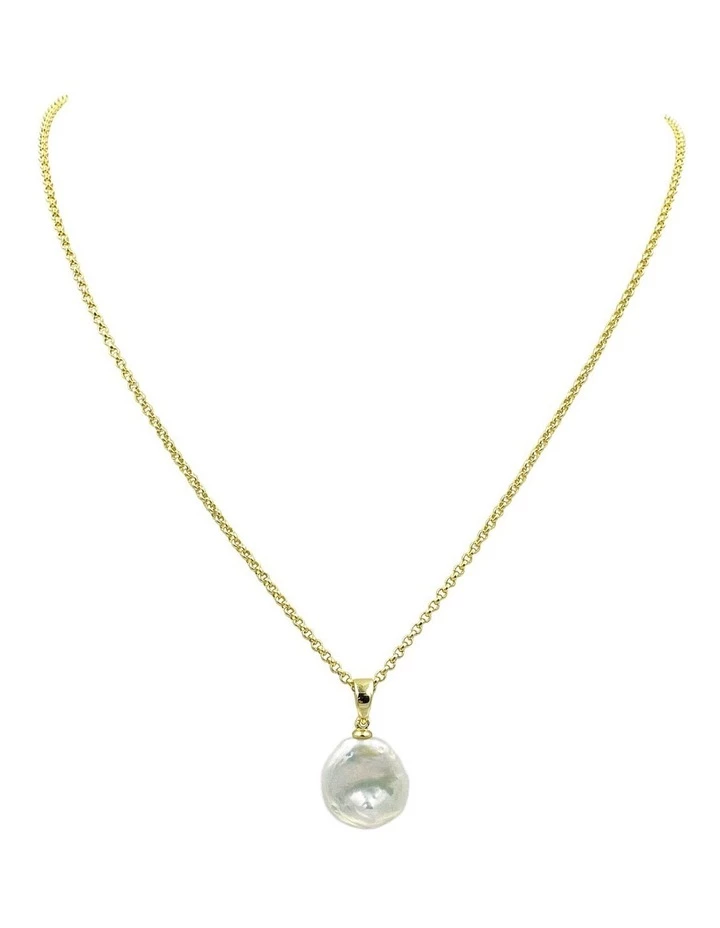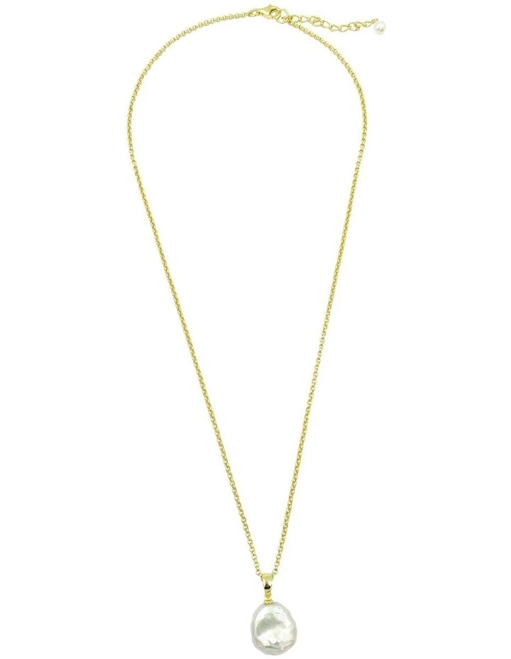 Premium 14ct Gold Plated Sterling Silver Organic Shapes of 12-14mm Cultured Freshwater Baroque Pearl Pendant on Belcher Chain – 40cm plus 5cm extension chain with pearl end.