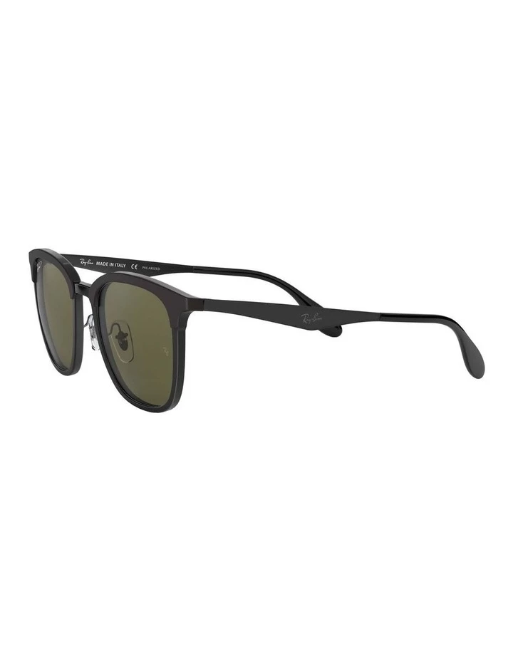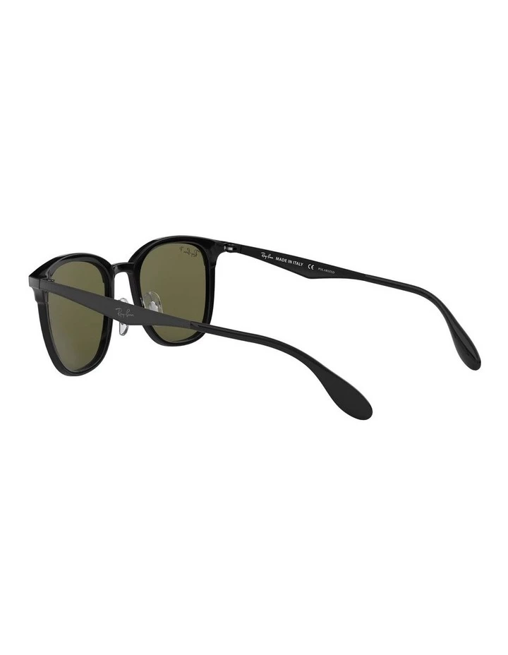 Ray-Ban square black injected sunglasses with green polarised lenses. Come in a designer-stamped case.