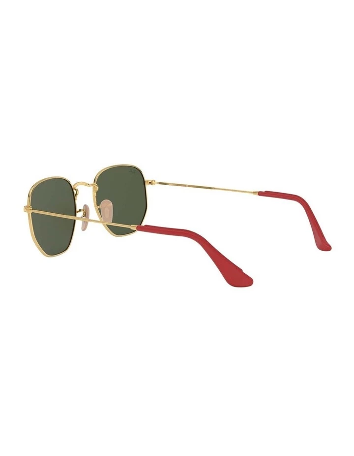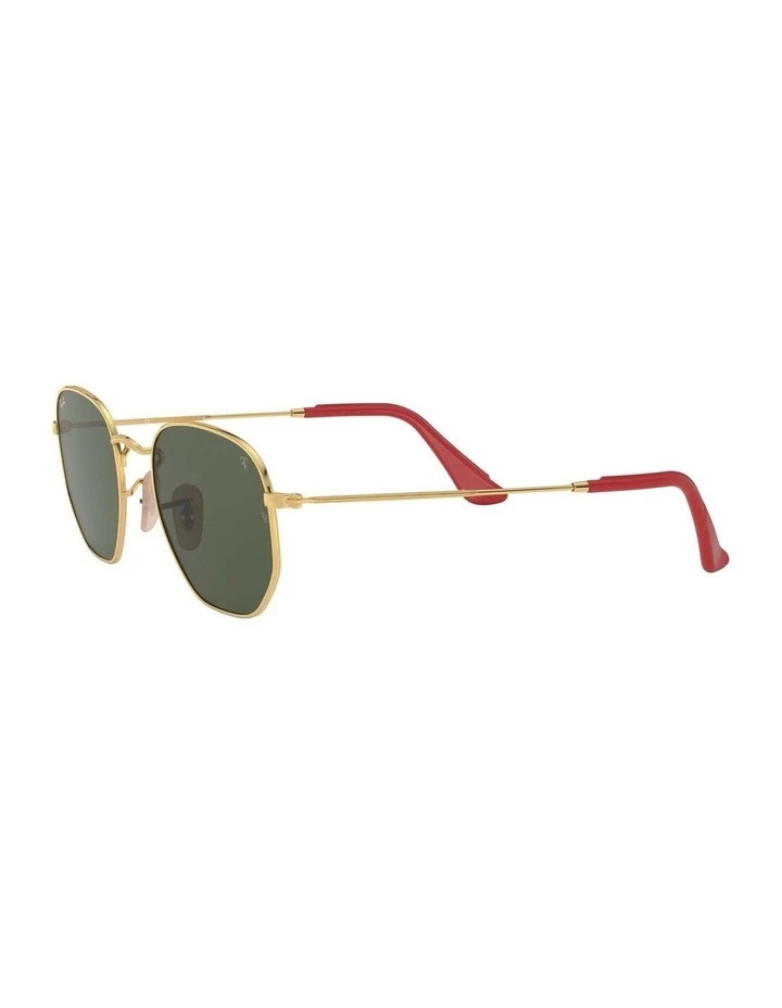 Ray-Ban square gold metal sunglasses with green lenses. Come in a designer-stamped case.