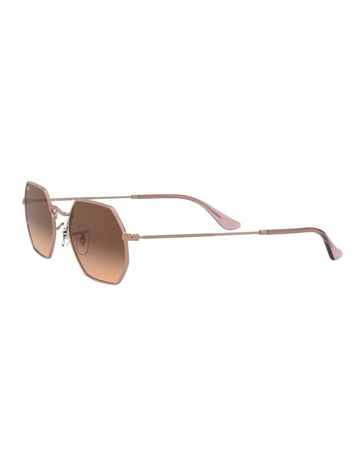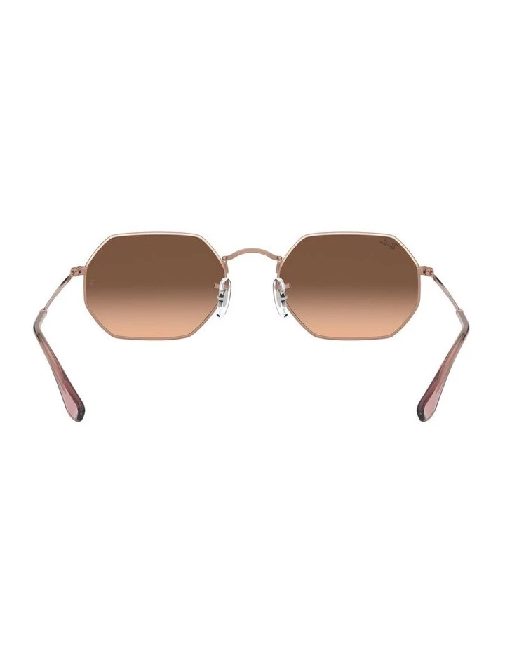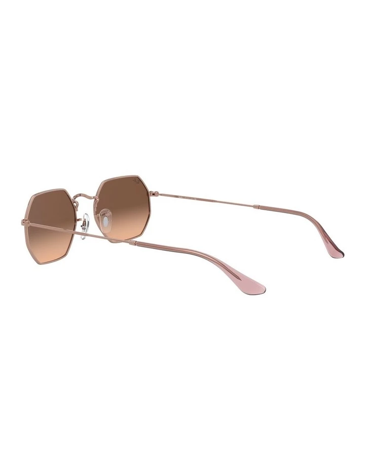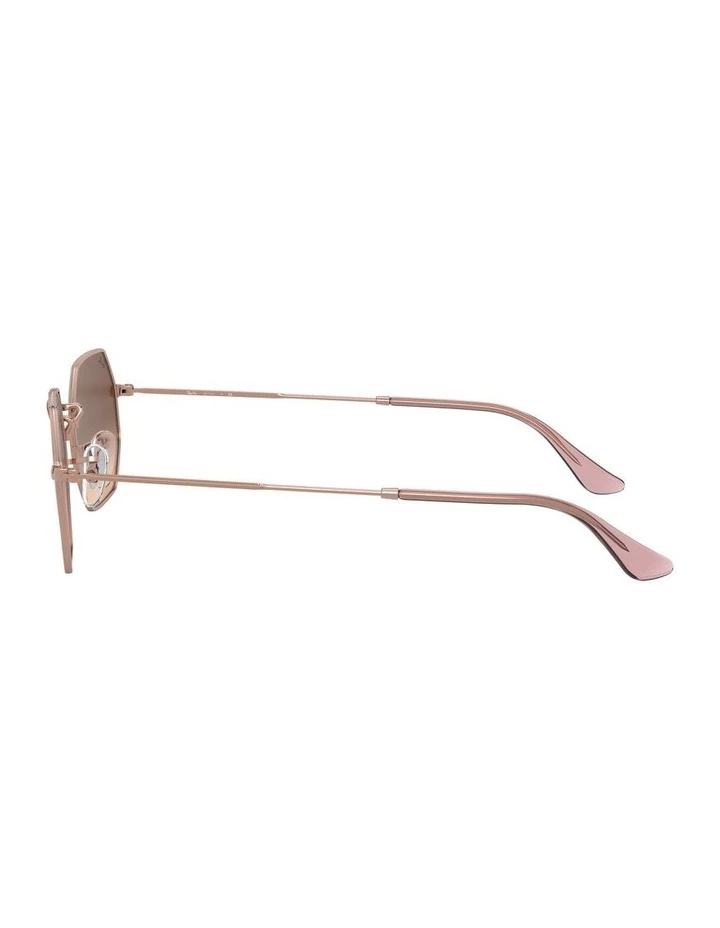 New shapes and trendsetting shades evolve the legendary profile of a retro classic with unique personality: Round goes Octagonal!Simultaneously underground, deluxe and revolutionary, this unconventional new octagonal shape reinvents the fine golden metal profiles of Ray-Ban classics with new premium quality flat crystal lenses in cool flash colors to reflect the daring spirit of contemporary icons with a fresh perspective on sophistication. Styled in resilient metal with extra-slim tubular temples, this lightweight, versatile golden frame is also available with unmistakable G15 and B15 options for a more classic take on edgy urban design.