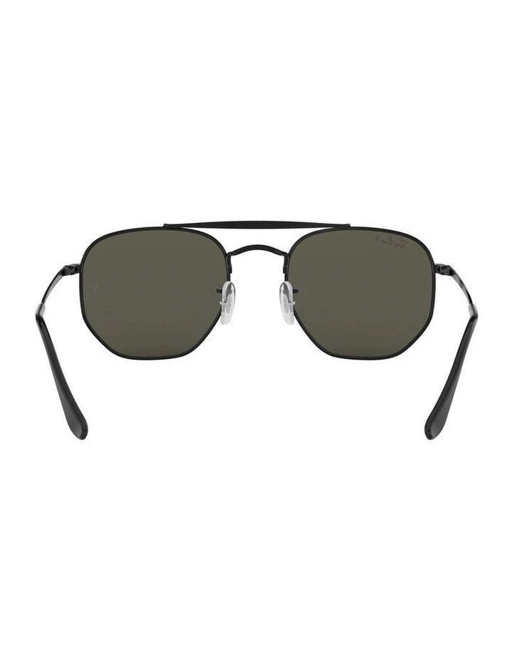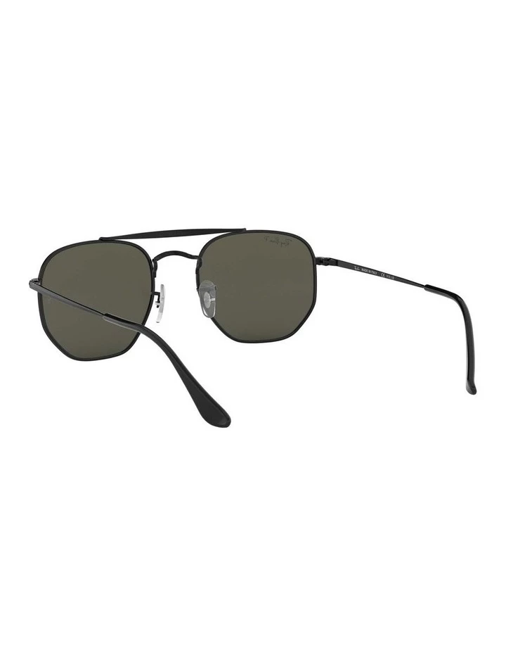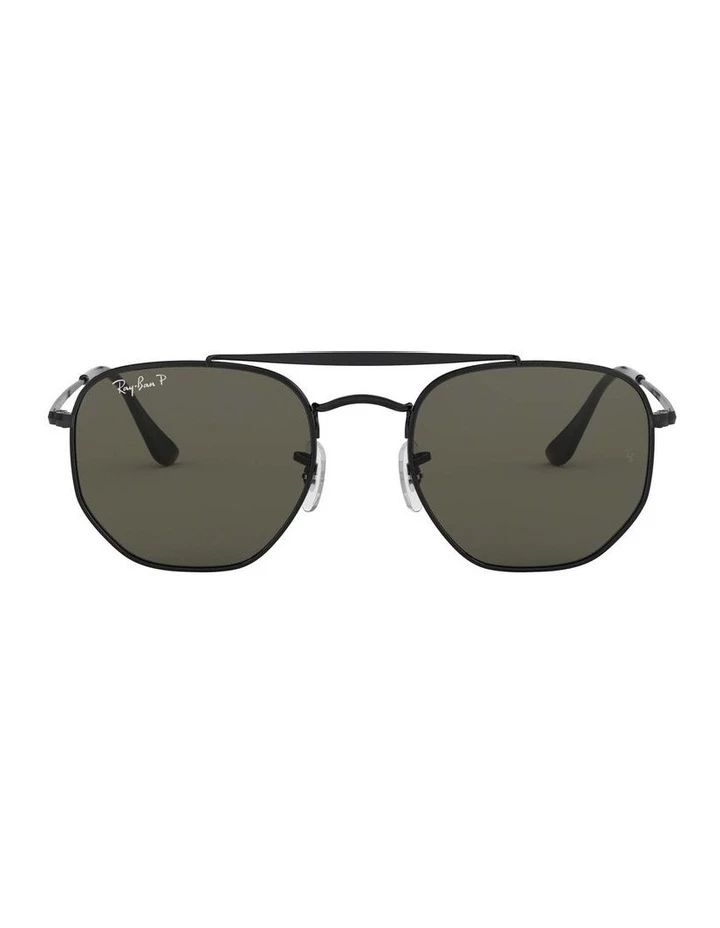 Ray-Ban The Marshal square black metal sunglasses with green polarised lenses. Come in a designer-stamped case.