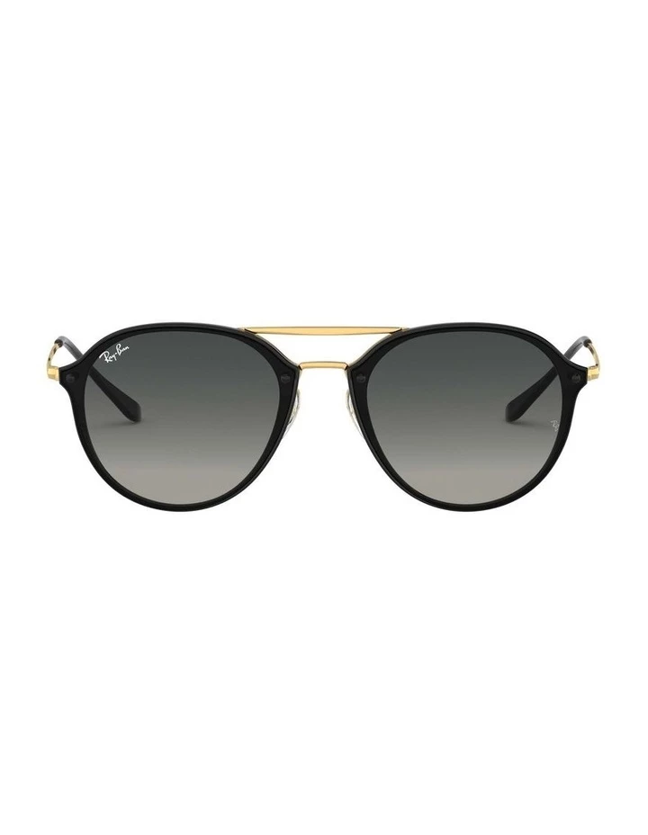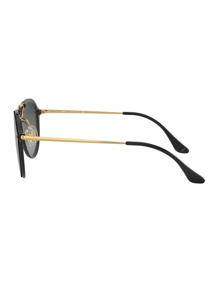 Ray-Ban Blaze Doublebridge square black injected sunglasses with light grey/dark grey gradient lenses. Come in a designer-stamped case.