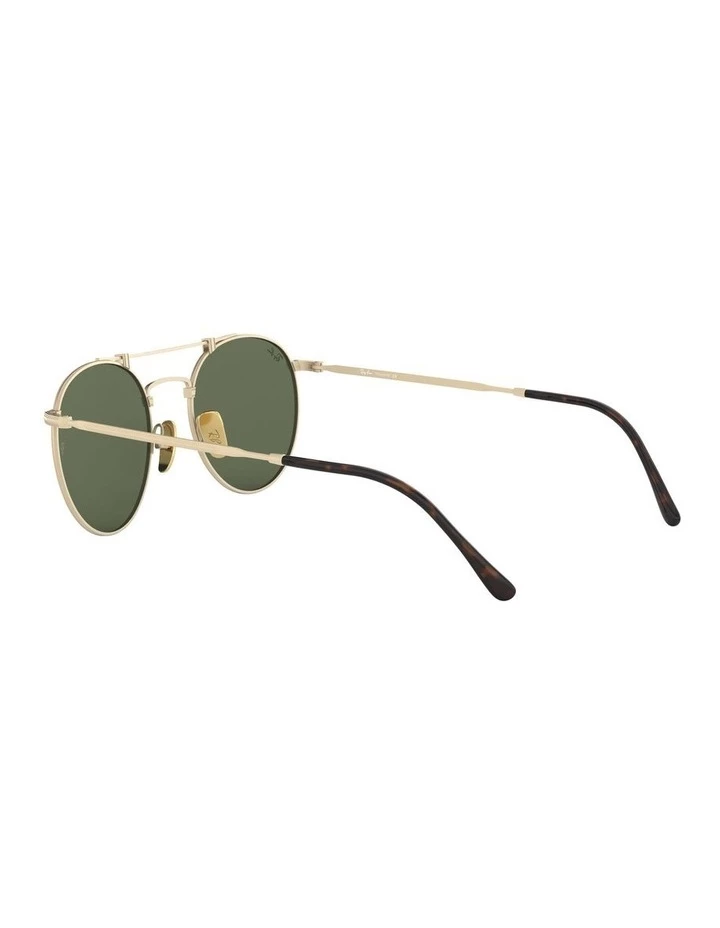 One of Ray-Ban’s boldest editions now comes in Titanium, ultra-light and Made in Japan. Heightening the infinite potential of this single-minded shape with a fine double bridge, this titanium frame redefines the select appeal of premium materials. Pairing brushed metal finishes and meticulously crafted detailing, this distinctive look comes in white gold with G15 green lenses, antique gold with gray lenses, pewter with blue lenses, shiny white gold with crystal green polarized lenses and silver with blue polarised lenses.