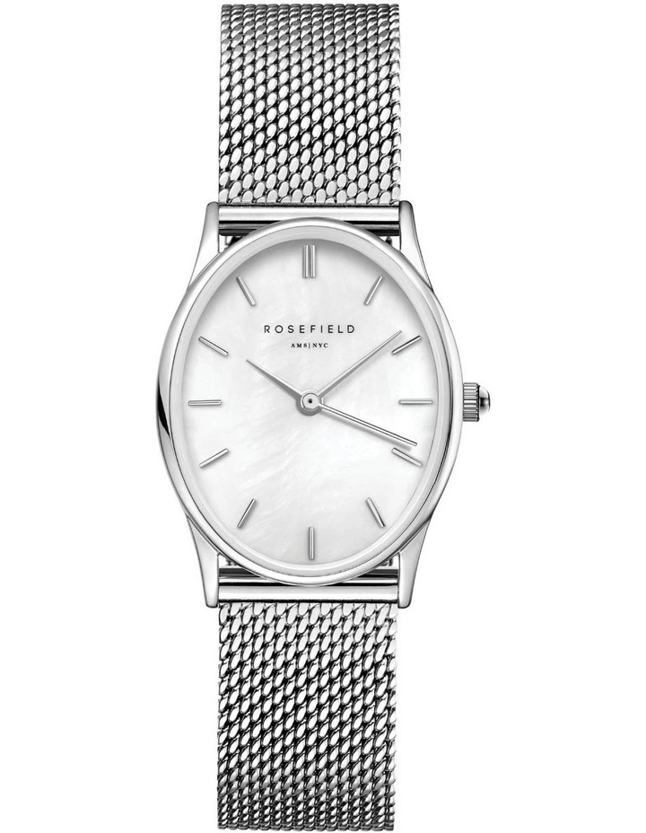 The Oval is Rosefield’s newest silhouette, designed for the trendsetters. They’ve reconnected with the classic case styles and updated elements: a silver stainless steel strap and mother of pearl dial.