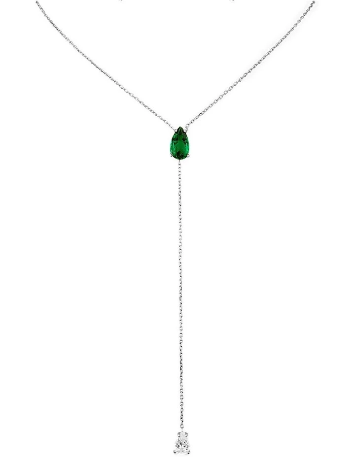 An elegant Emerald drop with brilliant lustre, this SALLY SKOUFIS Pear Necklace is a best selling style and entirely made by hand in solid silver with premium rhodium for durability.