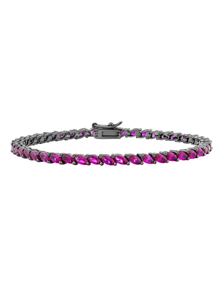 - Fabrication: 925 Silver Base, Premium Black Rhodium Plate, Hand-Set, Sustainable Man-Made Ruby Marquise