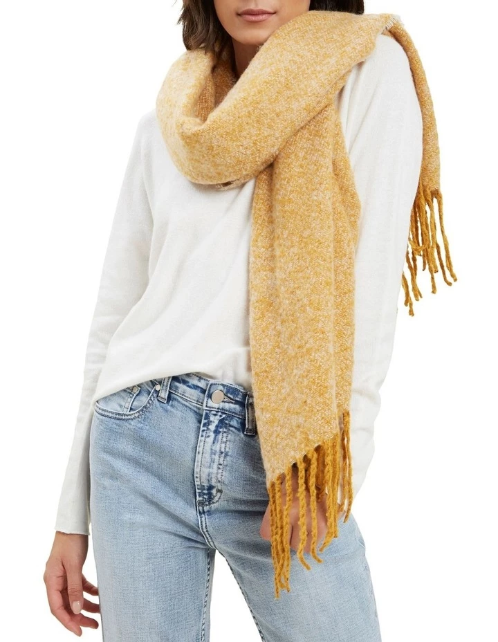 Designed in a crinkly material, this knitted scarf is chunky and warm, and features a neat, tasselled edge. The simple scarf is elegant and adds an element of texture to any look.
