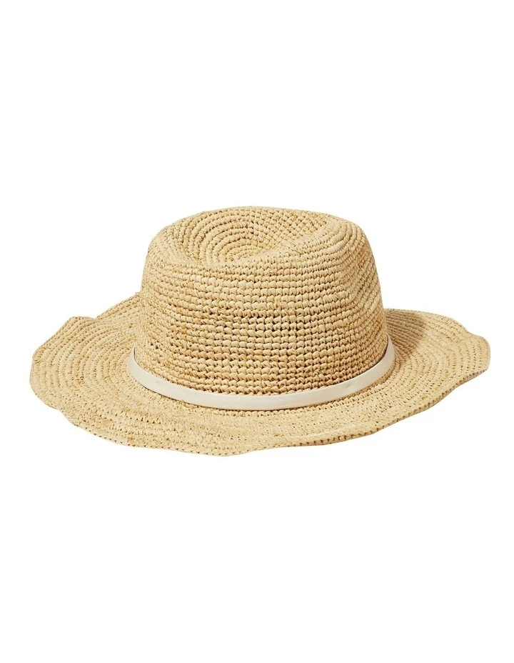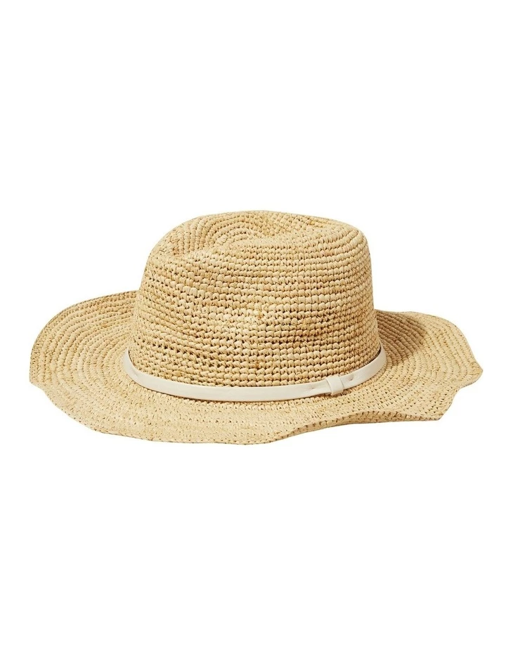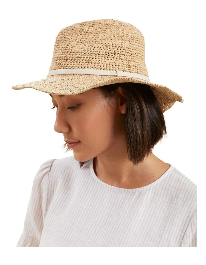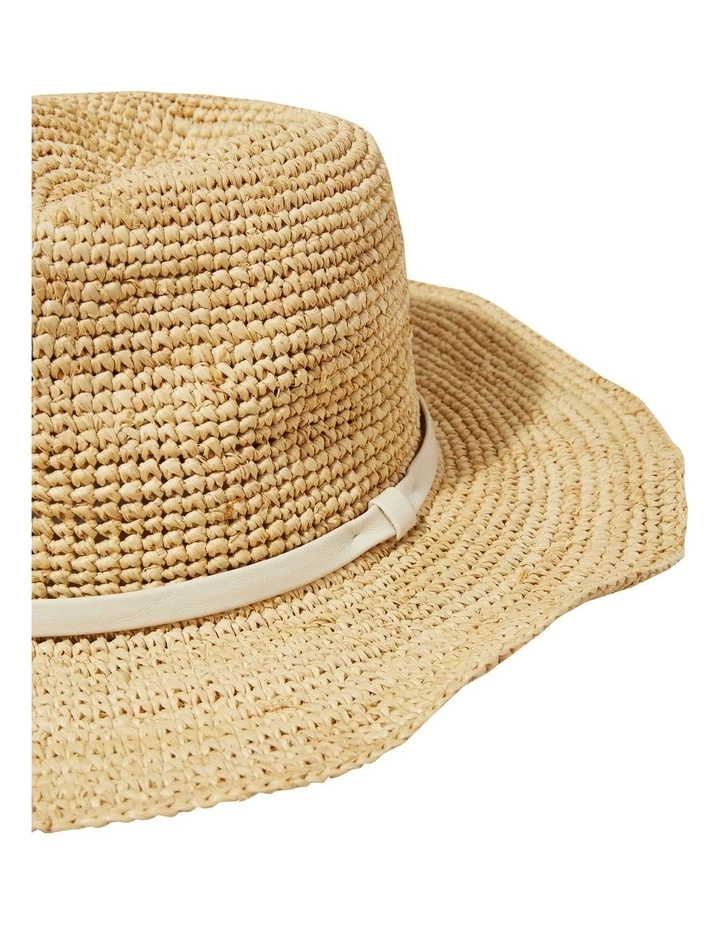 Designed with a moulded Panama shape and wide brim, this hat is an updated take on a classic style. The woven material falls into a structured yet relaxed silhouette, and the hat is trimmed with smooth PU and features a band of lining on the inside for a comfortable fit.