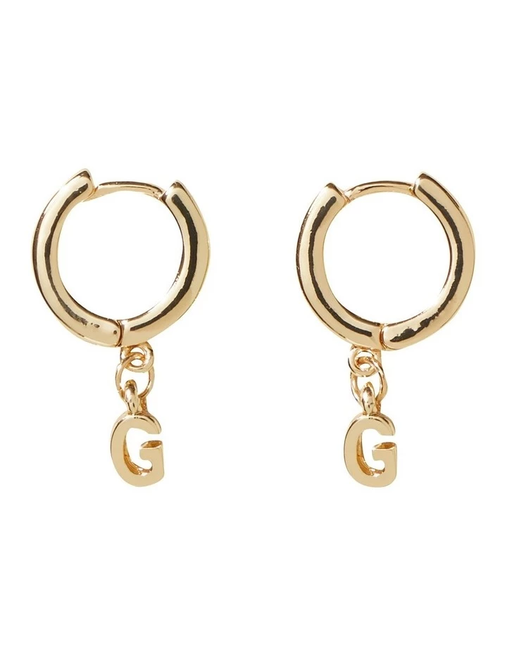 Personalise your look with these earrings, made with a minimal initial pendant suspended from the hoops. The gold look metal will add a hint of shine to any outfit, and the earrings have a latch closure.
