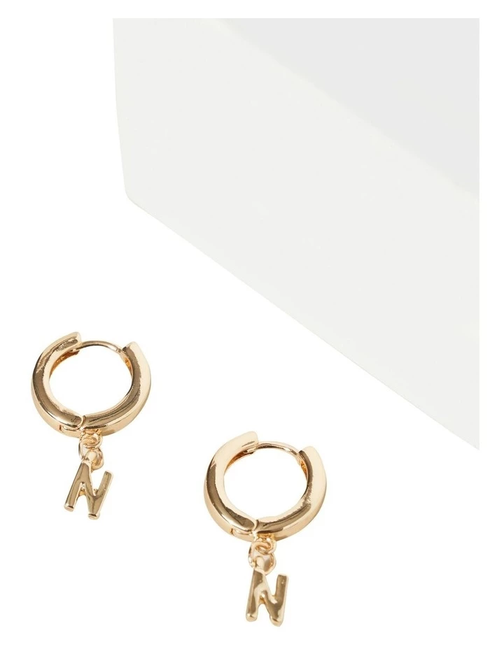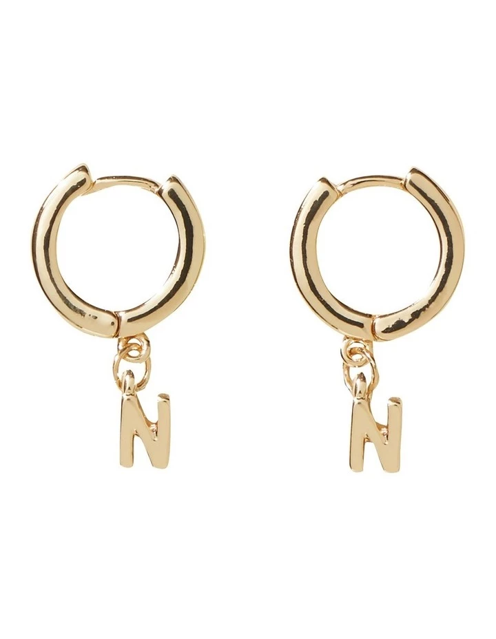 Personalise your look with these earrings, made with a minimal initial pendant suspended from the hoops. The gold look metal will add a hint of shine to any outfit, and the earrings have a latch closure.