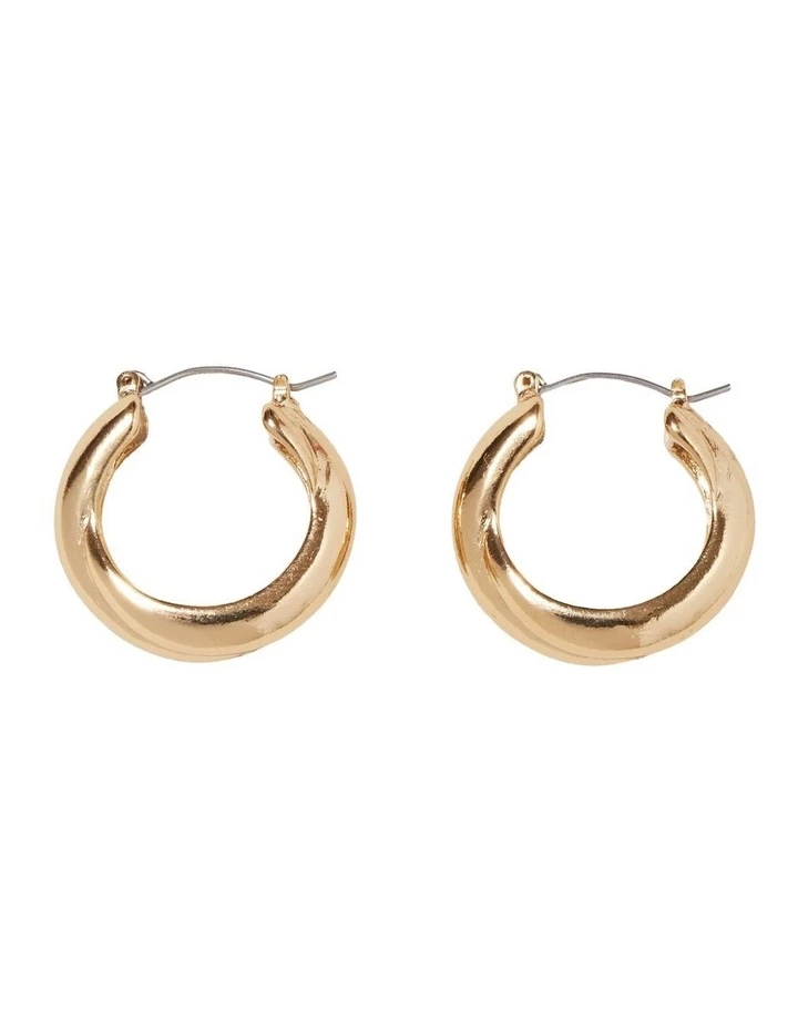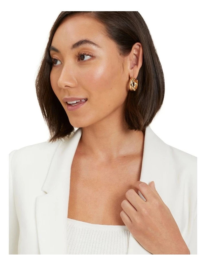 These subtle earrings are an easy way to enhance any outfit, designed with a fluid silhouette and shiny metal alloy. Intertwined hoops loop around each other to create the dynamic style of these earrings, and the hoops feature a latch closure.