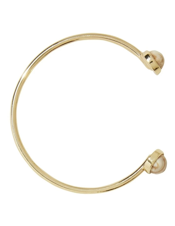 Designed with marble look resin at the ends, this cuff is an understated addition to your look. The open style is minimal but elegant, and slips easily onto the wrist.