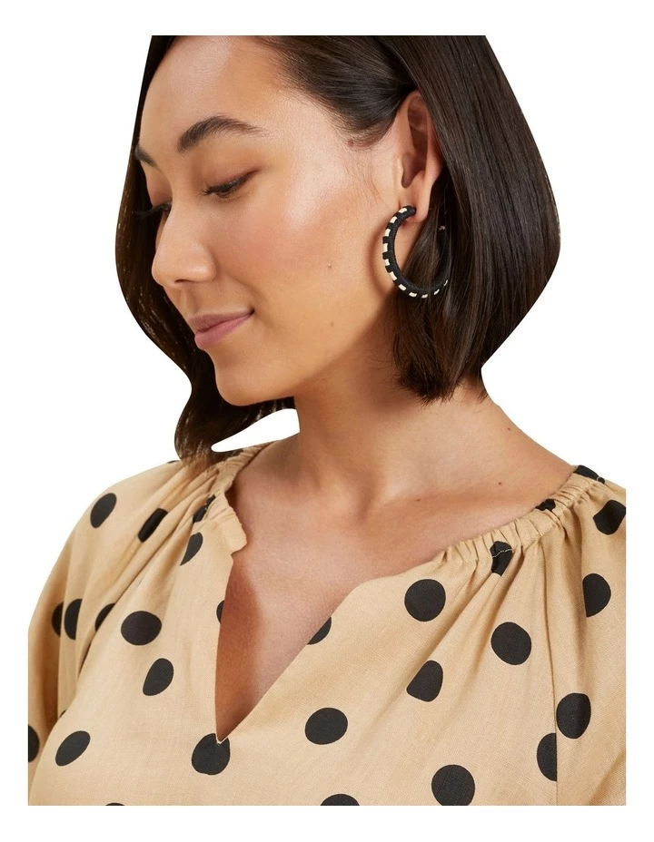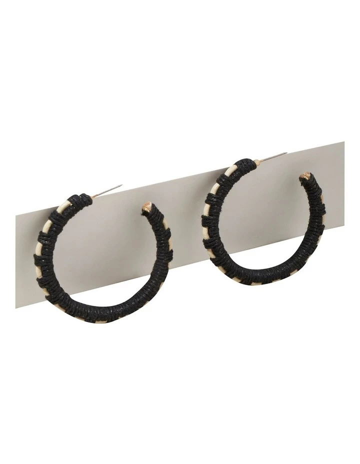 These hoop style earrings are an essential for sunny days, with a textured finish that will add an edge to your look. The woven cord design is punctuated by contrasting cloud cream details, and the hoop earrings have a latch closure.