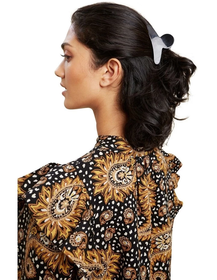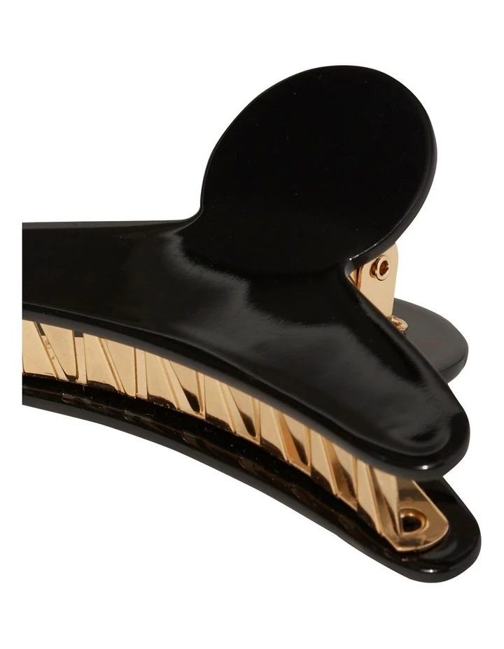 Effortlessly pull your hair back with this mid-size butterfly clip. With gold look detailing and a shiny finish, this clip will be your go-to hair accessory.