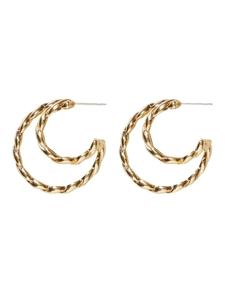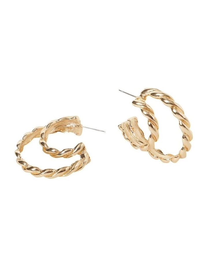 Twisted loops of gold look metal swing from these earrings, creating an open hoops design. The loops of metal are different lengths for a dynamic effect, and the earrings have a stud backing.