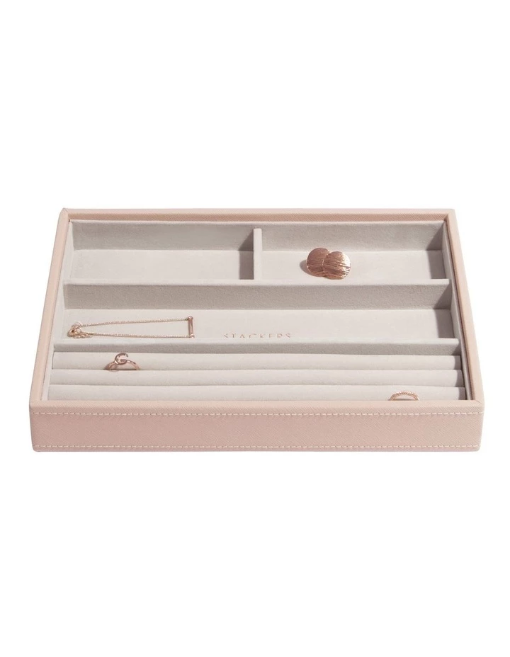 Stackers jewellery boxes are designed so you can create your own by choosing which layers and accessories best suit your unique collection. The Blush Classic Ring/Bracelets Layer is made with Vegan Leather & Velvet The title says it all, the classic ring/bracelet layer is designed specifically for your rings/earrings and bracelets and maybe the odd necklace. Size: 250x180x35mm